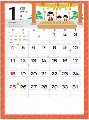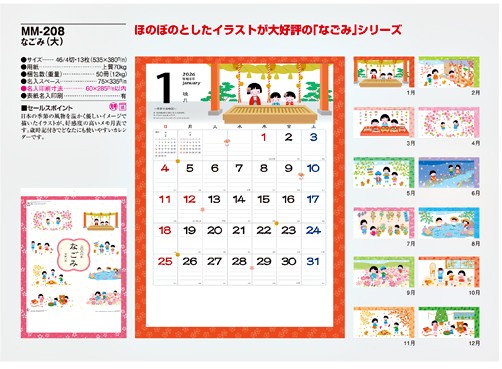 日本の季節の風物を温かく優しいイメージで描いたイラストが、好感度の高いメモ月表です。