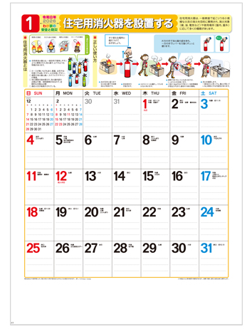 六曜や行事、点線の入った広いメモ欄は実用性も十分!