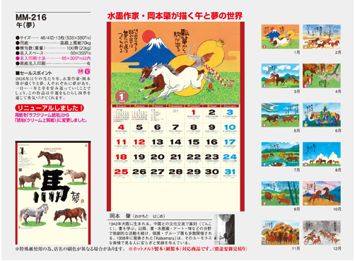 水墨作家・岡本肇が描く午と夢。人それぞれに夢があり、一日・・・一年と幸を育み巡っていくことでしょう。